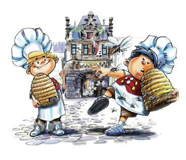 Aber da hörten sie etwas. Durch den Nebel klang Waffengeklirr, Schritte von festen Stiefeln und dazwischen auch schon mal ein Kommando: "Rammbock nach vorne, Hellebarden bereit, zieht Schwerter". Und als dann noch einer rief: "Fertig machen zum Angriff", da wurde es den beiden Angst und Bang. Zum läuten der Sturmglocke war es zu spät. "Die Binne", schrie da wieder der Döres, "ronne met denne Dinge". Sie nahmen die ganzen Körbe und warfen sie von der Mauer den Angreifern entgegen. Und die lieben Tierchen, in ihrer Nachtruhe gestört, stachen um sich wie wild. Einige Linzer waren auch noch so dumm und zerschlugen in ihrer Wut die Bienenkörbe, umso böser wurden die summenden Bienen.