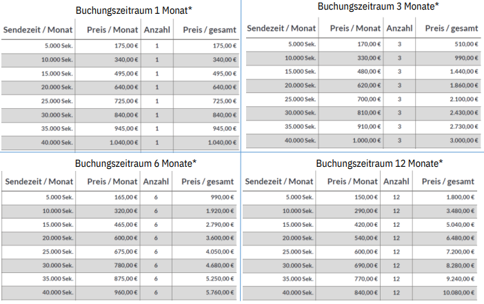 Alle angegbenen Preise zzgl. MwSt. / Weitere Buchungsoptionen auf Anfrage.